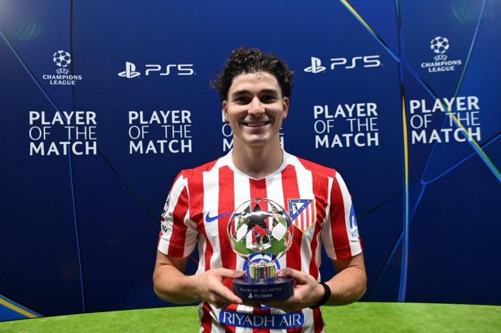 本赛季至今,阿尔瓦雷斯代表马竞在各项赛事中出场8次,已直接参与10粒进球,其中包括7粒进球和3次助攻。